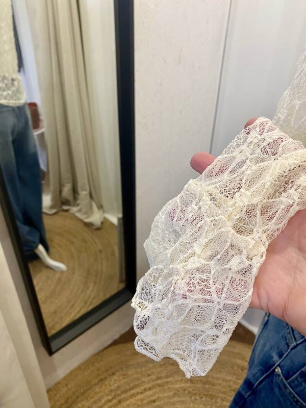 Zo mooi onder een blazer of een lekkere trui. Iets opstaand halsje en trompet mouw.